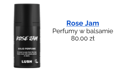 Perfumy w balsamie idealnie sprawdzą się w trakcie wyjazdów, zwłaszcza tych wakacyjnych. Pod wpływem ciepła skóry zapach jest bardziej intensywny, a opakowanie jest niewielkie. Lush w swojej ofercie posiada różnorodne zapachy, które trafią w każdy gust. Latem doskonale sprawdzi się Rose Jam, pachnący różą przełamaną świeżymi cytrusami.