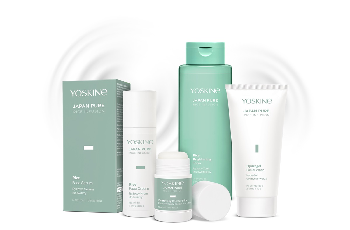 YOSKINE JAPAN PURE RICE INFUSION TO NOWA LINIA INSPIROWANA JAPOŃSKIMI RYTUAŁAMI PIĘKNA, KTÓRE ŁĄCZĄ NATURĘ I PRECYZJĘ. SKŁADA SIĘ Z 10 PRODUKTÓW, DZIĘKI KTÓRYM WYKONASZ PEŁNĄ RUTYNĘ PIELĘGNACYJNĄ – ZARÓWNO PORANNĄ, JAK I WIECZORNĄ. PODSTAWOWYM SKŁADNIKIEM FORMUŁ PRODUKTÓW JEST RYŻ.