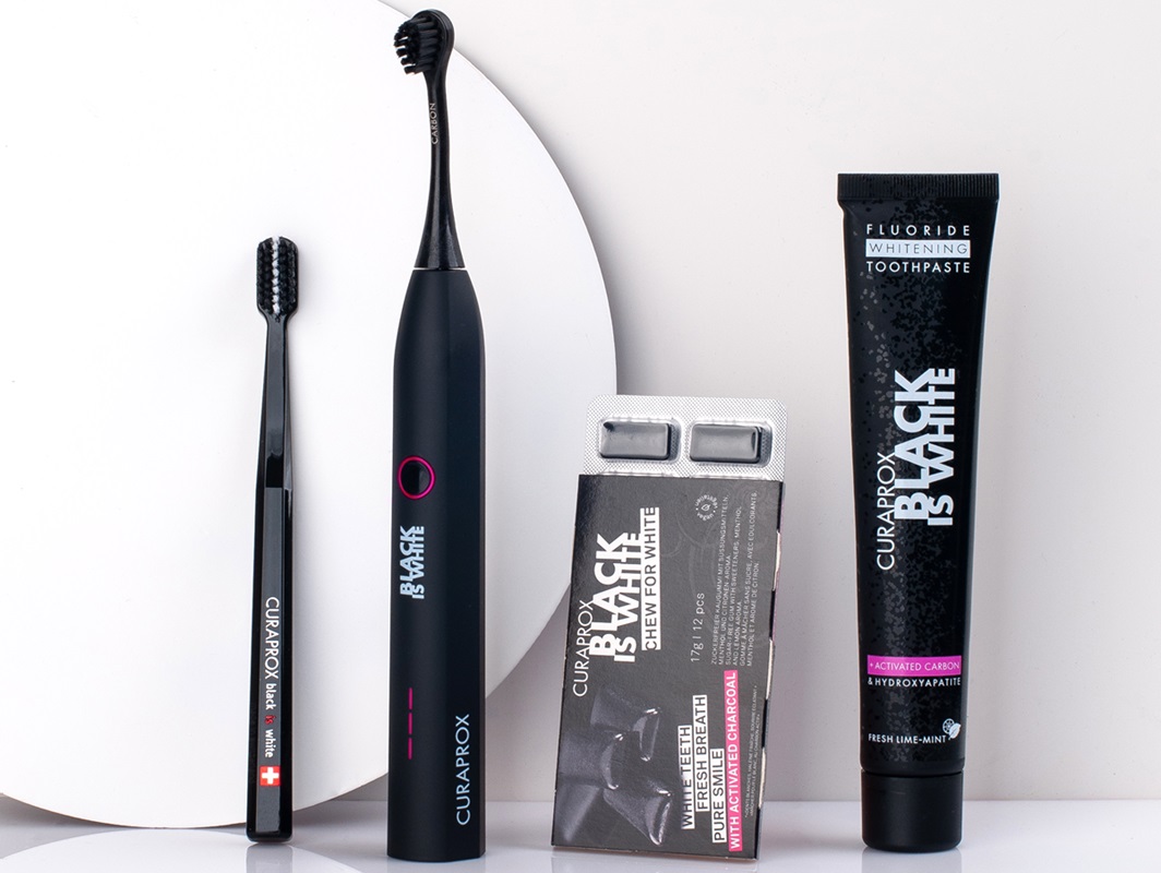O tym, jak węgiel aktywny działa w praktyce, można się przekonać dzięki linii produktów Curaprox Black is white. Do wyboru są: klasyczna manualna szczoteczka, szczoteczka hydrosoniczna, pasta do zębów i gumy do żucia oraz wygodny zestaw podróżny Travel set.