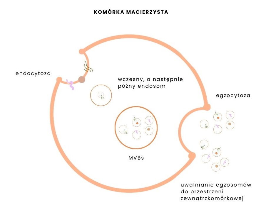 Proces tworzenia egzosomów zachodzi w wyniku dwóch naturalnie następujących po sobie etapów: endocytozy (wpuklenia błony komórkowej do wnętrza komórki) oraz egzocytozy (uwalniania zawartości na zewnątrz). W wyniku internalizacji błony komórkowej powstają endosomy wczesne, które następnie przekształcają się w ciałka wielopęcherzykowe (ang. multivesicular bodies, MVBs), czyli struktury zawierające liczne drobne pęcherzyki z wyselekcjonowanymi składnikami biologicznymi. Końcowy etap polega na wędrówce MVBs w kierunku błony komórkowej, gdzie łącząc się z nią uwalnia egzosomy do przestrzeni otaczającej komórkę. W literaturze naukowej egzosomy klasyfikowane są jako pęcherzyki zewnątrzkomórkowe (ang. extracellular vesicles, EVs). Warto wiedzieć, że mechanizm ich powstawania nie jest jednostkowy. Komórki mogą uwalniać od kilkudziesięciu tysięcy do nawet kilku milionów takich pęcherzyków dziennie!