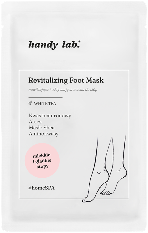 Nawilżająca i odżywcza maska (linia White Tea) w formie skarpet, silnie skoncentrowana na nawilżeniu i regeneracji stóp. Główne składniki: kwas hialuronowy, aminokwasy, masło cupuacu, masło shea.