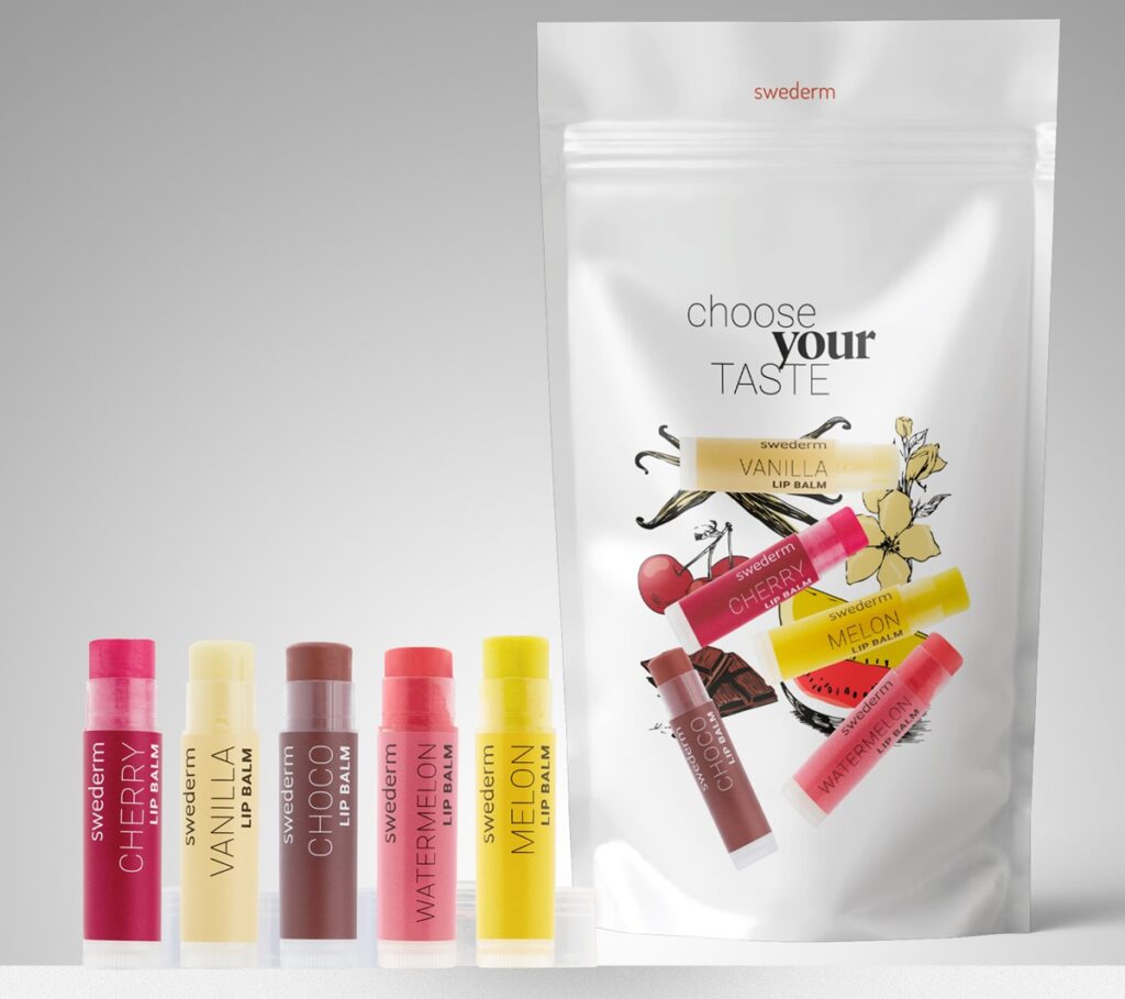 Nowość: regenerujące balsamy w wygodnym opakowaniu doypack, dostępne w pięciu intrygujących smakach: melonowym, arbuzowym, wiśniowym, waniliowym i czekoladowym.