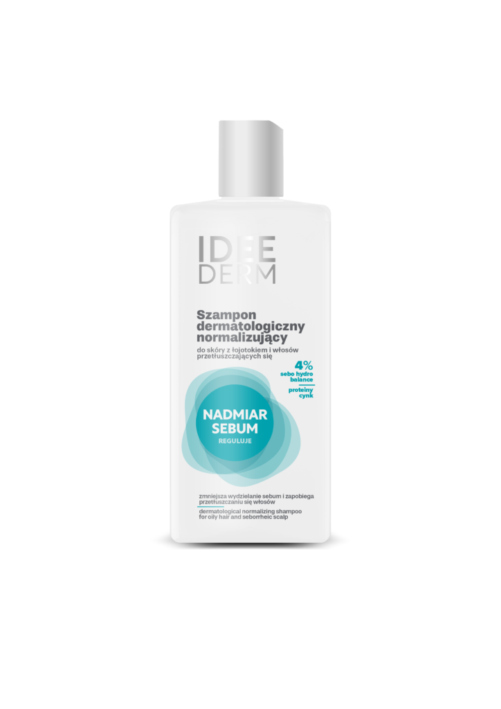 Dermatologiczny Szampon normalizujący przeznaczony jest do skóry z łojotokiem i  włosów przetłuszczających się. Działa kompleksowo: oczyszcza, normalizuje i łagodzi pozostawiając włosy świeże, lekkie i pełne blasku. Jego formuła zawiera Sebo Hydro Balance Complex 4%, cynk PCA, betainę, alantoinę i proteiny pszenicy. Regularnie stosowany: