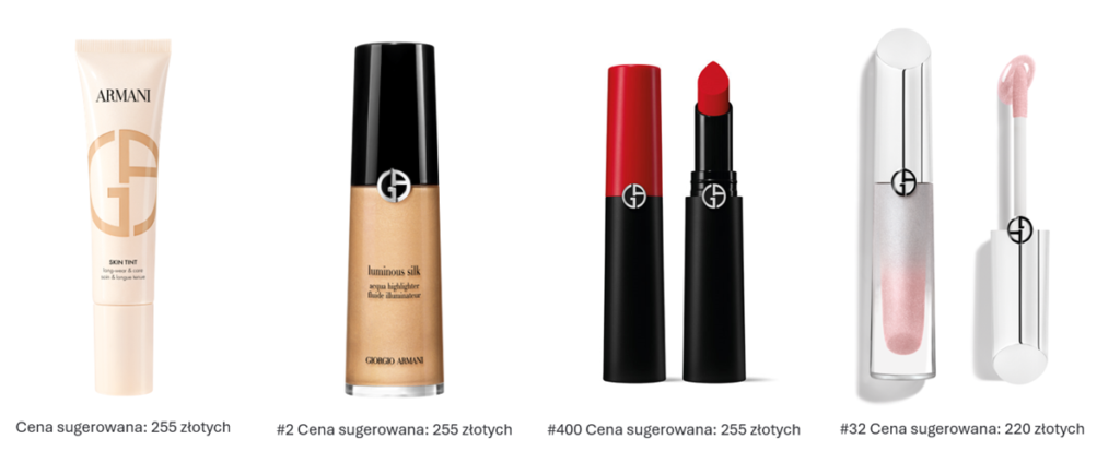 Kluczowy w świątecznym make-upie Armanie beauty jest makijaż oczu. Podkreślenie spojrzenia nie może jednak być jego jedynym elementem. Istotna jest również naturalna i rozświetlona skóra. Dokładnie taki efekt pozwoli uzyskać Skin Tint w odcieniu dopasowanym do karnacji. Dodatkowego blasku doda Acqua Highlighter #2, który nadaje piękny efekt biżuterii do twarzy. Aplikujemy go na kości policzkowe oraz usta. Zanim jednak trafi na usta, to te może ozdobić czerwona szminka w klasycznym odcieniu Lip Power #400. Dla bardziej naturalnego wykończenia, które nie będzie konkurowało z wyraziście podkreślonym okiem, ekspertka poleca efekt wycałowanych ust. Polega on na wklepaniu szminki opuszkami palców. Nuty nieoczywistości doda aplikacja nowego błyszczyka Prisma Glass Icy Plumper.