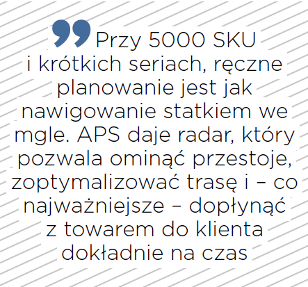 Przy 5000 SKU i krótkich seriach, ręczne planowanie jest jak nawigowanie statkiem we mgle. APS daje radar, który pozwala ominąć przestoje, zoptymalizować trasę i – co najważniejsze – dopłynąć z towarem do klienta dokładnie na czas.