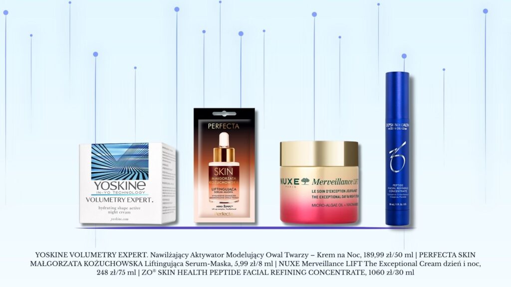 Profesjonalne zabiegi mogą skutecznie przeciwdziałać efektom grawitacji, jednak ich rezultaty bywą czasem zbyt intensywne lub odbiegają od naturalnych proporcji twarzy. Jeśli zależy nam na subtelnym, harmonijnym podtrzymaniu konturów, warto sięgnąć po pielęgnację, która w inteligentny sposób „łamie” prawa fizyki i biologii urody. Nowoczesne formuły kosmetyczne wykorzystują zaawansowane składniki aktywne, takie jak różne frakcje kwasu hialuronowego, ekstrakty z mikroalg o wyjątkowych właściwościach regeneracyjnych czy retinoidy nowej generacji, które pobudzają syntezę kolagenu. To właśnie dzięki nim poprawia się napięcie skóry, zwiększa jej sprężystość i przywracana jest utracona objętość tkanek. Zaawansowane technologie peptydowe dodatkowo wzmacniają procesy odnowy, wspierają odbudowę struktur podporowych i pomagają modelować kontur twarzy. Regularne stosowanie takich produktów nie zmienia rysów, lecz delikatnie je udoskonala, spowalniając widoczne procesy starzenia.