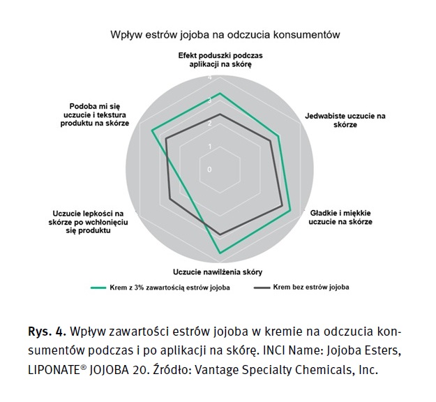 Jeden z surowców dostępnych na rynku, w mieszance hydrolizowanych estrów jojoba i estrów jojoba (Hydrolyzed Jojoba Esters (and) Jojoba Esters (and) Water), został zoptymalizowany tak, aby zachować korzyści dla skóry i włosów wynikające ze stosowania estrów jojoba, jednocześnie ułatwiając włączenie składnika do receptur wodnych. Estry jojoba poddane hydrolizie zmieniają profil sensoryczny receptury, poprawiają rozprowadzanie oraz dodają subtelnej gęstości i miękkości, przy jednoczesnym zachowaniu szybkiego wchłaniania charakterystycznego dla oleju jojoba. Mieszanina wykazuje właściwości filmotwórcze, które synergicznie wzmacniają efekt nawilżający substancji higroskopijnych, takich jak gliceryna. Mieszankę hydrolizowanych estrów jojoba z prostymi estrami jojoba można również wprowadzać do receptur myjących, bazujących na łagodnych surfaktantach tj. tauryniany, aby uzyskać bardziej nawilżające formuły, które będą wpływać na lepsze odczucia na skórze i włosach po myciu oraz na lepszą jakość piany.
