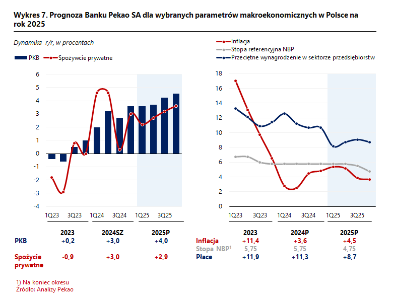 Z kolei w kontekście warunków dla sprzedaży zagranicznej, na razie trudno spodziewać się radykalnej poprawy. Najnowsze prognozy Komisji Europejskiej przewidują wprawdzie w 2025 r. lekkie przyspieszenie wzrostu gospodarczego i dynamiki konsumpcji prywatnej w Unii Europejskiej, jednak trudno określić te oczekiwania mianem powrotu na ścieżkę szybkiego wzrostu. Gospodarka unijna, a w szczególności jej główny motor napędowy, tzn. Niemcy, pozostanie raczej pogrążona w stagnacji, co prawdopodobnie nie pozwoli na znaczne ożywienie w wydatkach konsumpcyjnych.