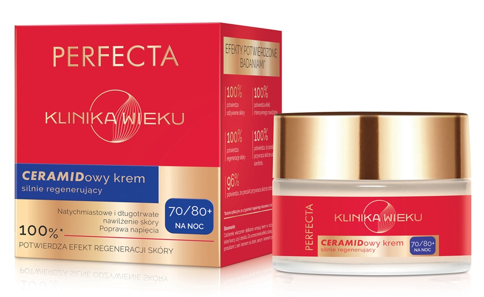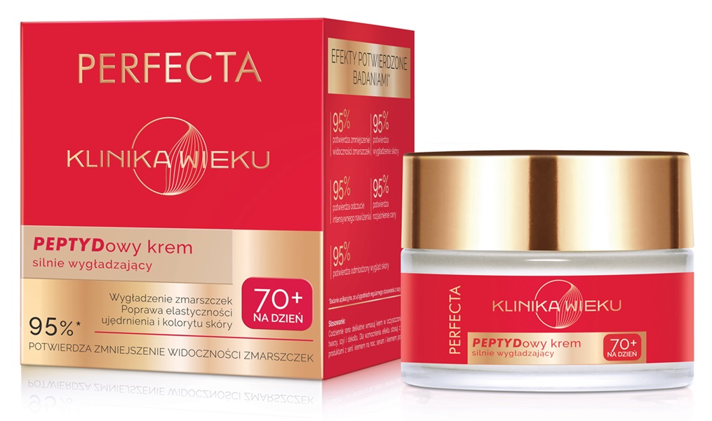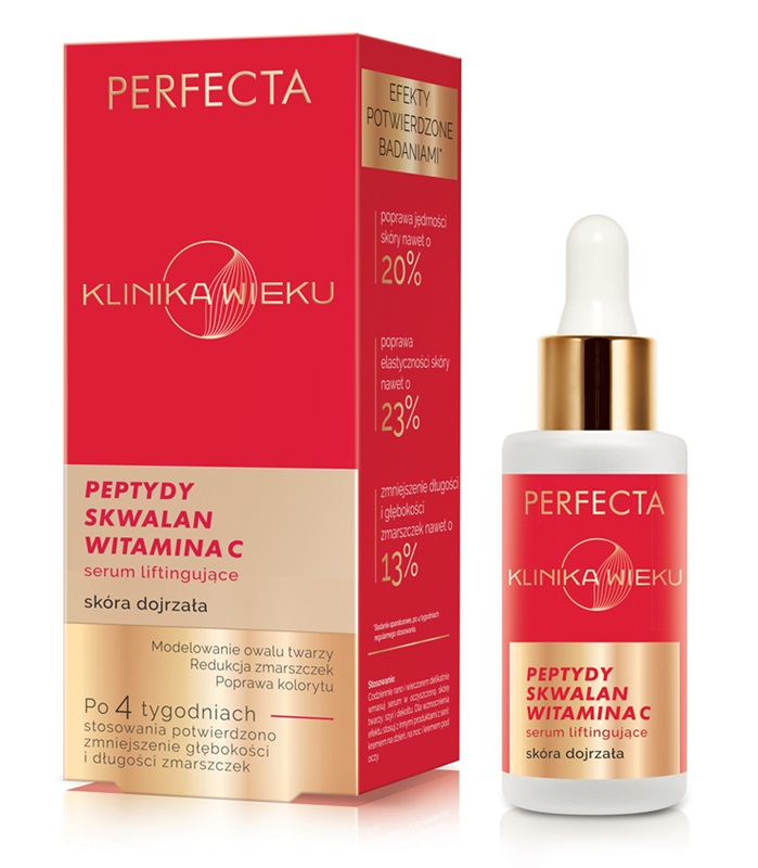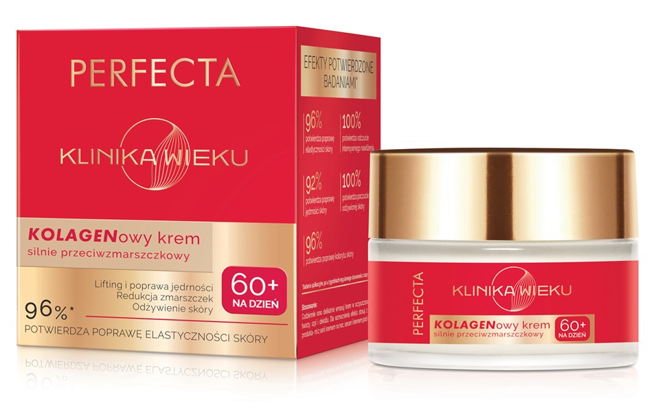 Marka PERFECTA stworzyła linię KLINIKA WIEKU, odpowiadającą na specyficzne potrzeby skóry dojrzałej na każdym etapie – od 60., aż po 80. rok życia. Seria obejmuje kremy na dzień i noc, serum oraz krem pod oczy, które działają synergicznie, by wspierać naturalne procesy regeneracyjne skóry i redukować oznaki starzenia. Formuły produktów bazują na starannie dobranych składnikach aktywnych o potwierdzonej skuteczności: kolagenie, elastynie, peptydach biomimetycznych, koenzymie Q10, ceramidach czy stabilnej witaminie C. Wspólnie nawilżają, odżywiają i wzmacniają skórę, przywracając jej jędrność, elastyczność i promienny wygląd. Efekty działania potwierdzają badania – już po 4 tygodniach regularnego stosowania użytkowniczki zauważają wygładzenie zmarszczek, poprawę elastyczności oraz intensywne nawilżenie. Dzięki przystępnej cenie i wysokiej skuteczności, KLINIKA WIEKU to codzienna, dostępna dla każdej kobiety pielęgnacja w duchu smart ageing – bez walki z czasem, w harmonii z naturalnym rytmem skóry.