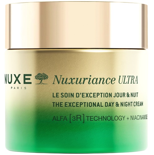 Nuxe podjął się wyzwania, aby stworzyć wyjątkowo skuteczny, wielozadaniowy krem przeciwstarzeniowy. Celem było opracowanie formuły, która w ciągu dnia chroni, wygładza, ujednolica i dodaje blasku, za to nocą wspiera regenerację, odnowę i nawilżenie skóry. Eksperci laboratorium NUXE opracowali produkt, który odpowiada na chronobiologiczne potrzeby skóry. Dzięki połączeniu technologii Alfa [3R] z niacynamidem, ta formuła zapewnia nieprzerwaną pielęgnację przez 24 godziny: korekcję w dzień i odnowę nocą. Luksusowy słoiczek w szmaragdowo-złotym wykończeniu zawiera 75 ml produktu, idealnego do porannej i wieczornej aplikacji. Ultrasensoryczna konsystencja kremu jest lekka i płynna, zapewniając satynowe wykończenie na dzień, a jednocześnie wystarczająco otulająca, by zapewnić komfort na noc. Produkt jest odpowiedni dla każdego typu skóry, a jego nowoczesny i wyrafinowany zapach dodatkowo podkreśla jego wyjątkowość.