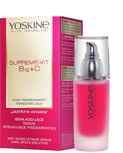 Wypróbuj: YOSKINE SUPREME-VIT B12&C Zastrzyk Witamin Odmładzające serum redukujące przebarwienia, 69,99 zł/30 g