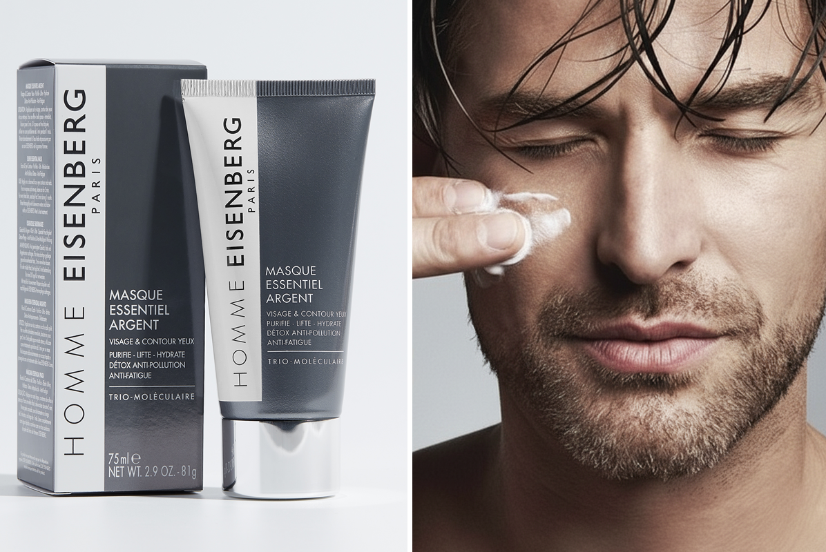 EISENBERG SILVER ESSENTIAL MASK działa niczym natychmiastowy seans relaksacyjny: koi, nawilża i oczyszcza, przywracając skórze świeży, zdrowy wygląd. Żelowo-kremowa konsystencja maski łączy moc srebra, kaolinu, ekstraktu z nasion moringi oraz biotechnologicznego czynnika tensorowego, by w jednym kroku zwalczać oznaki zmęczenia, stresu i zanieczyszczeń. Od pierwszego zastosowania skóra staje się gładsza, jędrniejsza i pełna energii, a oznaki zmęczenia – wyraźnie zredukowane. To idealne rozwiązanie do twarzy i okolic oczu, kiedy potrzebujesz szybkiego, skutecznego efektu regeneracji.