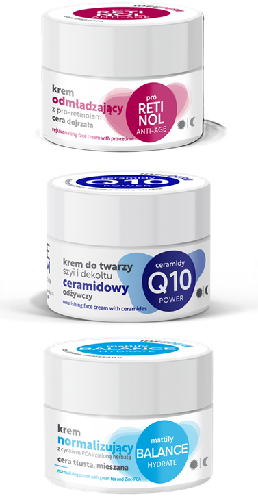 Jeżeli zależy nam, aby skóra twarzy, szyi i dekoltu stale pozostawała w dobrej kondycji – wyglądała świeżo, młodo i promiennie – musimy uważnie ją obserwować. Jej potrzeby zmieniają się bowiem regularnie na skutek wielu czynników, na czele z upływem czasu. Na jej stan, w różnym stopniu, wpływ mają również m.in. zanieczyszczenie środowiska, promieniowanie UV, dieta, ogólny stan zdrowia, stres czy niebieskie światło. Do tego dochodzi ‘wyjściowy’ rodzaj skóry – czy jest raczej sucha, ma tendencję do przetłuszczania się, a  może do pojawiania się niedoskonałości. Wniosek? Nie da się stworzyć  jednego kremu, który będzie w stanie spełnić wymagania każdego rodzaju skóry bez względu na jej rodzaj, wiek i warunki zewnętrzne. Doskonale wiedzą o tym specjaliści z Instytutu Dermokosmetyków Ideepharm, którzy stawiają na perfekcyjne dopasowanie swoich kremów do potrzeb naszych skór. Oto trzy z nich: Odmładzający Krem z pro-retinolem do cery dojrzałej, Ceramidowy krem odżywczy do cery suchej oraz Normalizujący krem z cynkiem PCA i zieloną herbatą do cery tłustej i mieszanej.