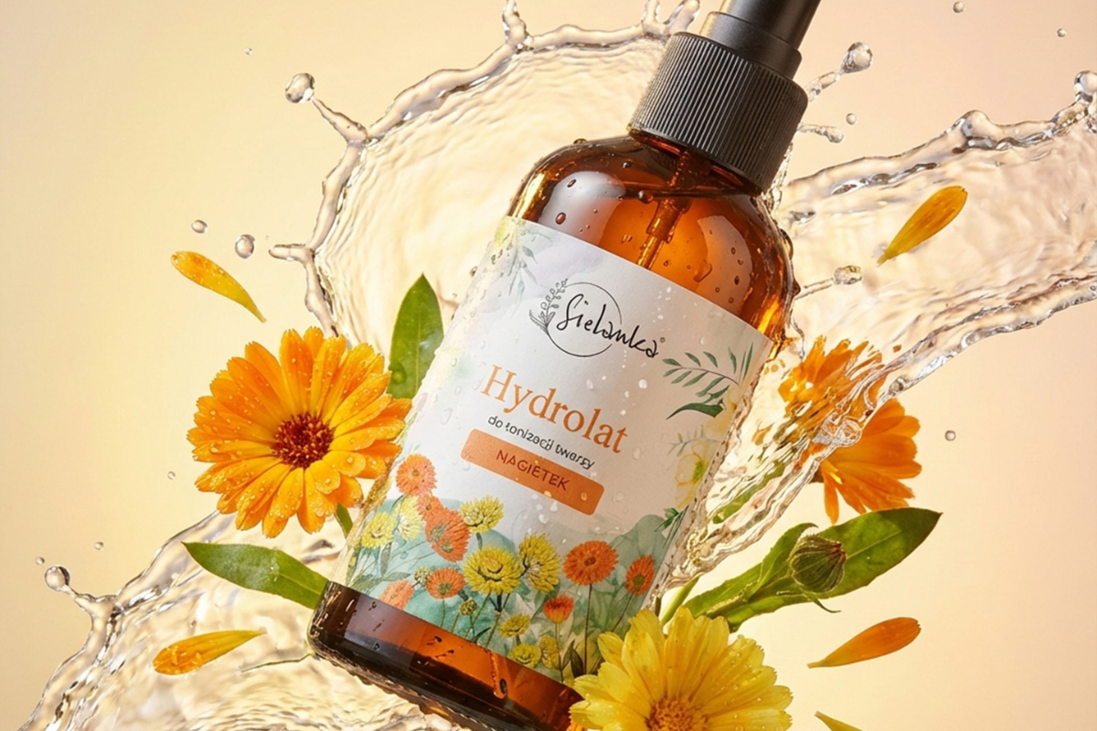 • Woda kwiatowa z nagietka – ukojenie i świeżość. Działa jak łagodny start dnia dla cery wrażliwej i delikatnej. Pomaga skórze poczuć lekkość i komfort już na etapie tonizacji.