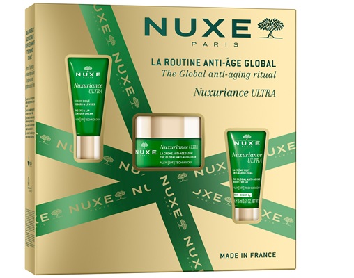Zawiera: Nuxuriance ULTRA Krem przeciwstarzeniowy na dzień 50 ml, Nuxuriance ULTRA Krem przeciwstarzeniowy na noc 15 ml, Nuxuriance ULTRA Krem do skóry wokół oczu i ust 15 ml
